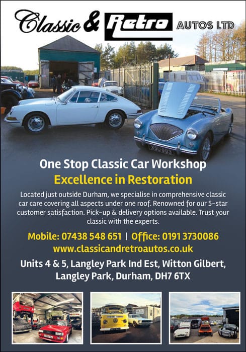 If you’re searching for an all-around sales, spares, and restoration garage in the north-east of England, look no further than us! At Classic & Retro Autos Ltd, we are a small business with a big passion for classic and retro vehicles. We have new stock arriving weekly, catering to various budgets, from restoration projects to fully restored vehicles. Additionally, we have a selection of spares for older vehicles in our garage compound. Plus you can count on us for all your maintenance, servicing, and restoration work.