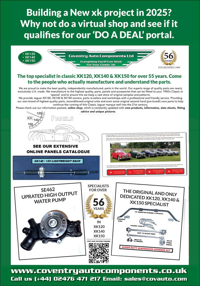 We are proud to be the oldest established and sole dedicated manufacturer and retailer specialising in parts for XK120, XK140, and XK150 Jaguars. Our inventory is continuously growing, so be sure to visit our website for the latest updates. If you’re unable to find a specific part, don’t hesitate to reach out to us. We maintain extensive stocks of used parts and possess valuable industry connections. With ongoing investments, we are consistently expanding our manufacturing capabilities to include even the most challenging-to-find parts.